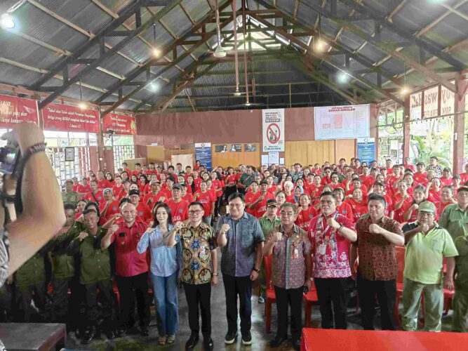 Petasulut.com, MINUT — Tim relawan yang nantinya akan bertugas menjaga gangguan kamtibmas di wilayah lingkungan seputar ideologi politik, ekonomi, sosial, budaya, pertahanan, dan keamanan di Kecamatan Kema resmi dikukuhkan Bupati Minahasa Utara, Joune Ganda, S.E., M.A.P., M.M., M.Si., dan Wakil Bupati Kevin William Lotulung, SH.MH.,