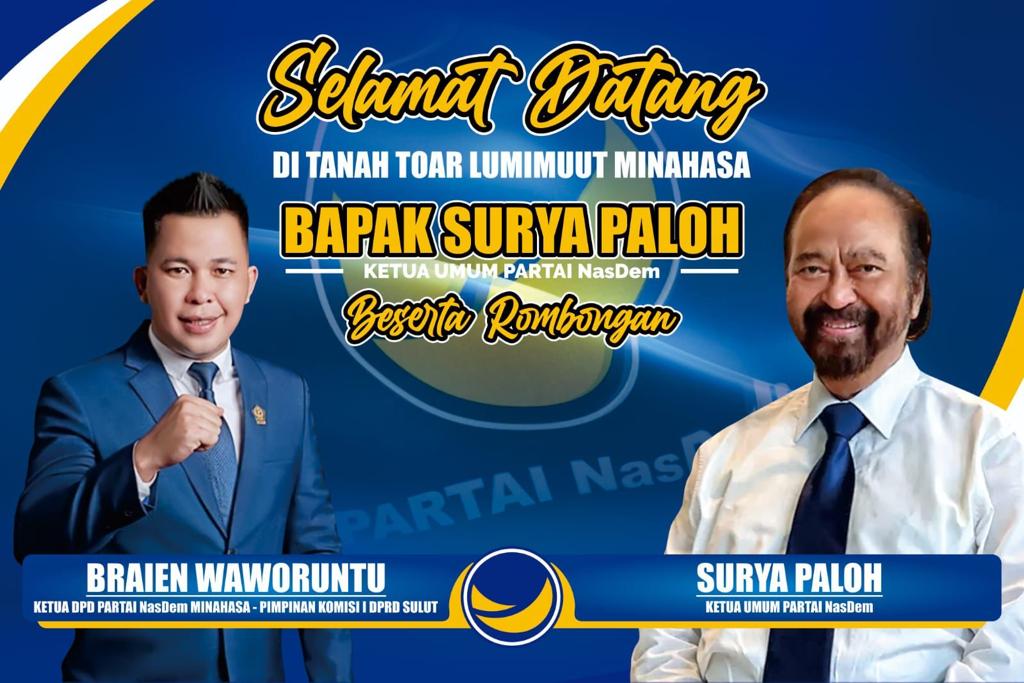 Petasulut.com, SULUT – Terinformasi bahwa Senin tanggal 19 september 2022, Ketua Umum Partai NasDem, Surya Paloh bakal mengunjungi kabupaten Minahasa. Agenda utamanya adalah untuk pelantikan Dewan Perwakilan Daerah (DPD) NasDem Kabupaten Minahasa.