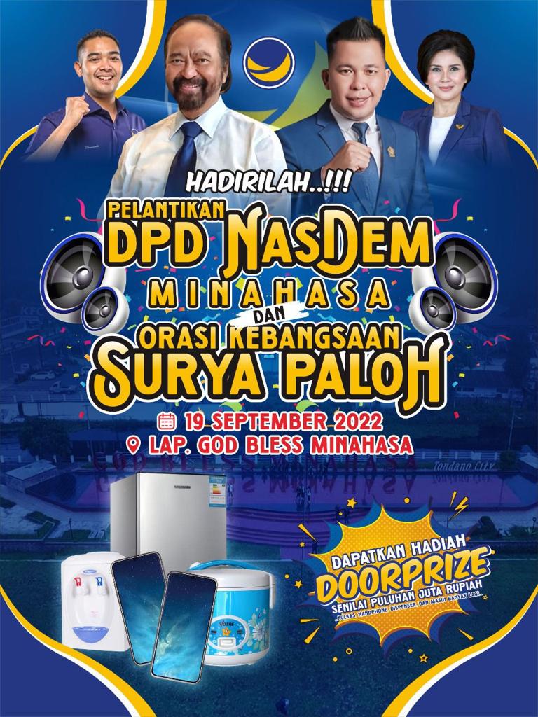 Pelantikan pengurus DPD NasDem Minahasa nanti, akan digelar di lapangan God Bless Minahasa, Tondano.