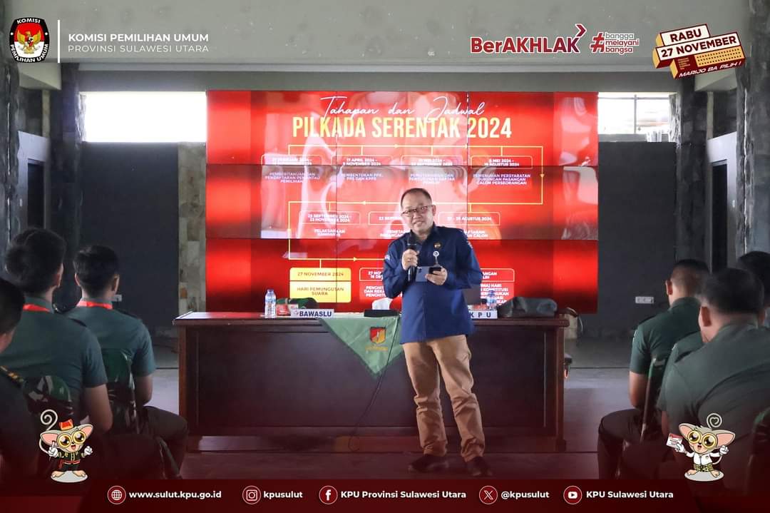 Petasulut.com, KPU – Sekretaris KPU Sulut Meidy Malonda didaulat menjadi salah satu narasumber dalam kegiatan Sosialisasi Pelaksanaan Pemilihan Kepala Daerah (Pilkada) Tahun 2024.