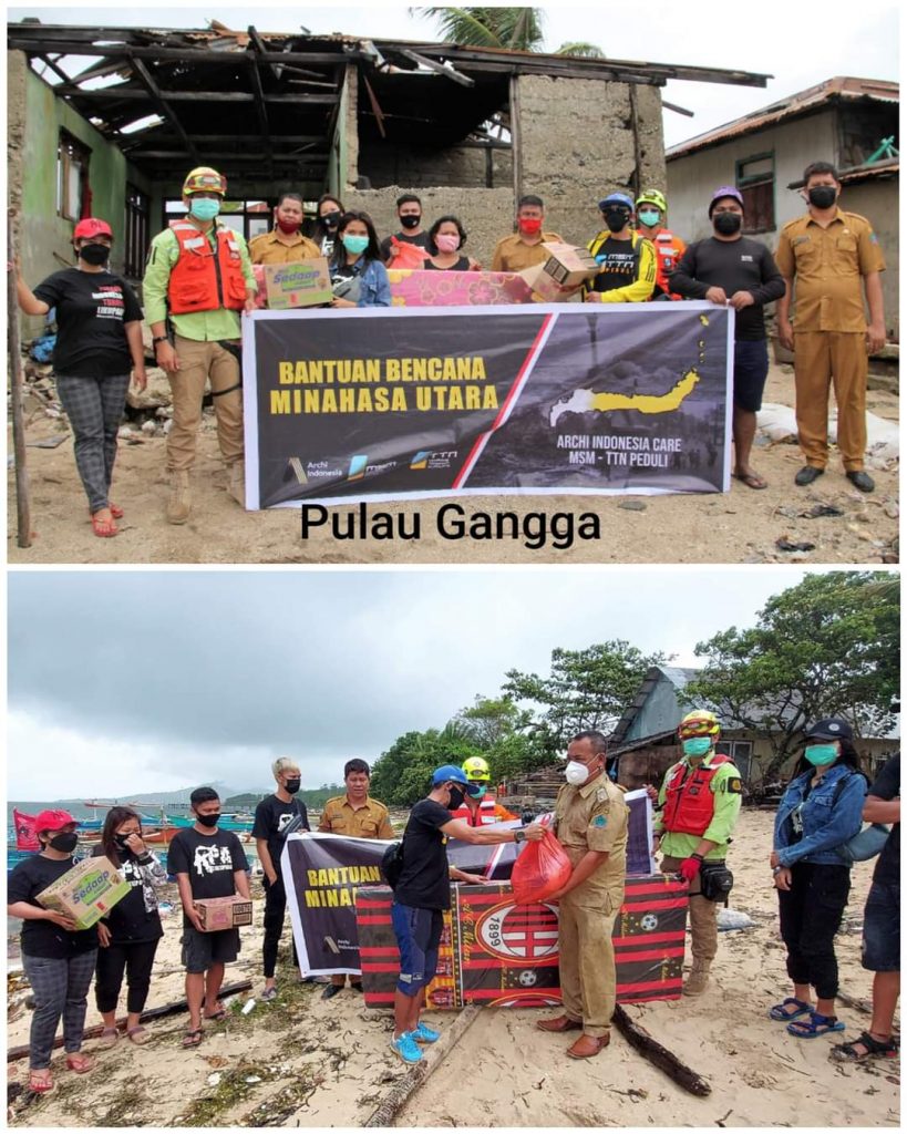 Di Pulau Gangga, terdapat sekitar 25 rumah yang hancur akibat dihantam ombak. Kepala Desa Gangga Satu, Moses Corneles, menerima langsung bantuan yang diberikan PT MSM dan PT TTN. Setelah dari Pulau Gangga, bantuan juga diberikan kepada warga desa Sarawet yang terkena imbas banjir.