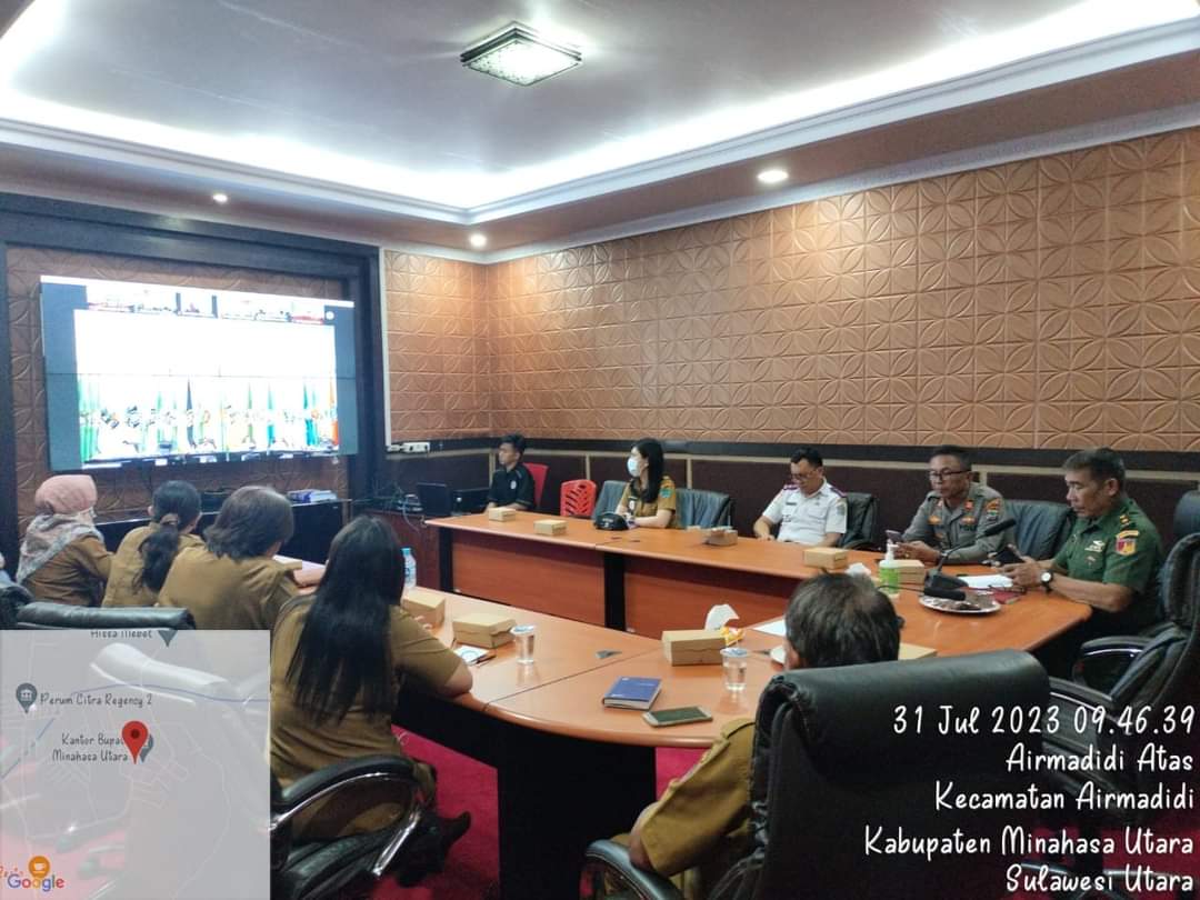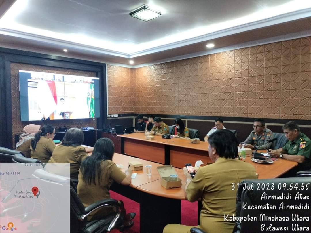 Petasulut.com, MINUT – Tim Pengendalian Inflasi Daerah Kabupaten Minahasa Utara didampingi oleh Forkopimda unsur TNI dan Unsur Kepolisian Minahasa Utara dan BPS Minahasa Utara mengikuti Rapat Koordinasi bersama Mendagri Jenderal Polisi Prof. Drs. H. Muhammad Tito Karnavian, M.A., Ph.D., bersama Menkeu Sri Mulyani, Kepala BMKG Prof.Dwikorita Karnawati,M.Sc.,PH.D secara virtual, bertempat di ruang zoom Lt3.kantor Bupati Senin, (31/07/2023)