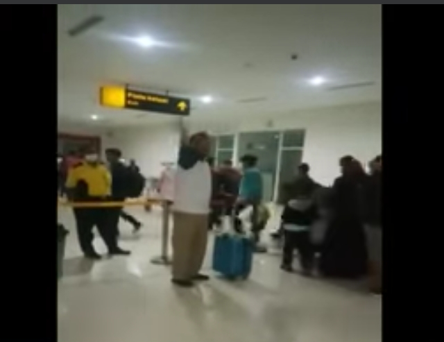 Dalam video berdurasi 2 menit 50 detik yang viral, Resvin tampak mengenakan kaus putih berwarna cokelat tampak mengajak penumpang yang tiba di bandara tidak mengikuti rapid antigen.