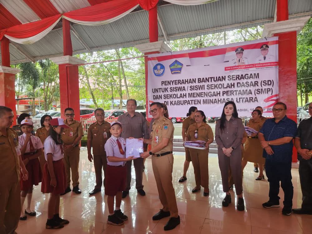 Petasulut.com, MINAHASA UTARA – Komitmen Pemerintah Kabupaten (Pemkab) Minahasa Utara (Minut) dalam menunjang dan meningkatkan kualitas pendidikan, terus direalisasikan dan dibuktikan dengan membagikan bantuan seragam sekolah bagi para pelajar tingkat SD dan SMP.