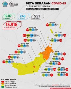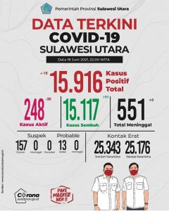 Petasulut.com, SULUT – Pemerintah Provinsi Sulawesi Utara terus merilis data Covid-19, dimana data per tanggal 18 juni 2021 jam 22.00 Wita terus mengalami perubahan.