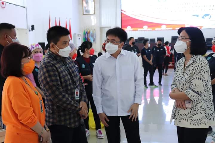 Usai memberikan sambutan, Walikota Manado membuka secara resmi pelaksanaan Vaksinasi dan selanjutnya mengunjungi beberapa tempat pelaksanaan Vaksinasi di kompleks Auditorium.