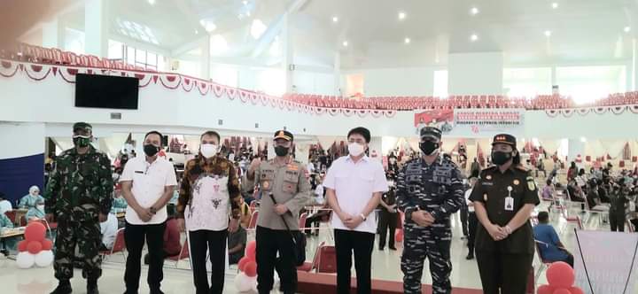 Hari ini, Jumat (13/8) Walikota Manado Andrei Angouw dan Jajaran bersama Forkopimda Kota Manado melakukan kegiatan peninjauan Vaksinasi Masal di Auditorium Unsrat, program vaksinasi masal yang mengambil tajuk “Vaksin Merdeka Samrat” itu mendapat support penuh dari Pemerintah Provinsi Sulawesi Utara, Kodam XIII Merdeka dan Pemkot Manado.