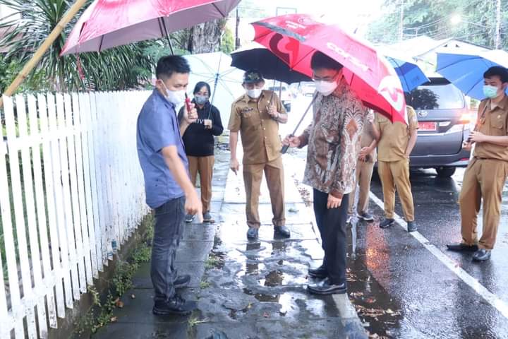 Ditengah kondisi Hujan Walikota tetap meninjau lokasi Karena rencananya Trotoar disepanjang jalan Sudirman akan diperbaiki, hal tersebut akan perbaiki karena jalan Sudirman merupakan salah satu jalan utama di Kota Manado sehingga perlu diperbaiki.