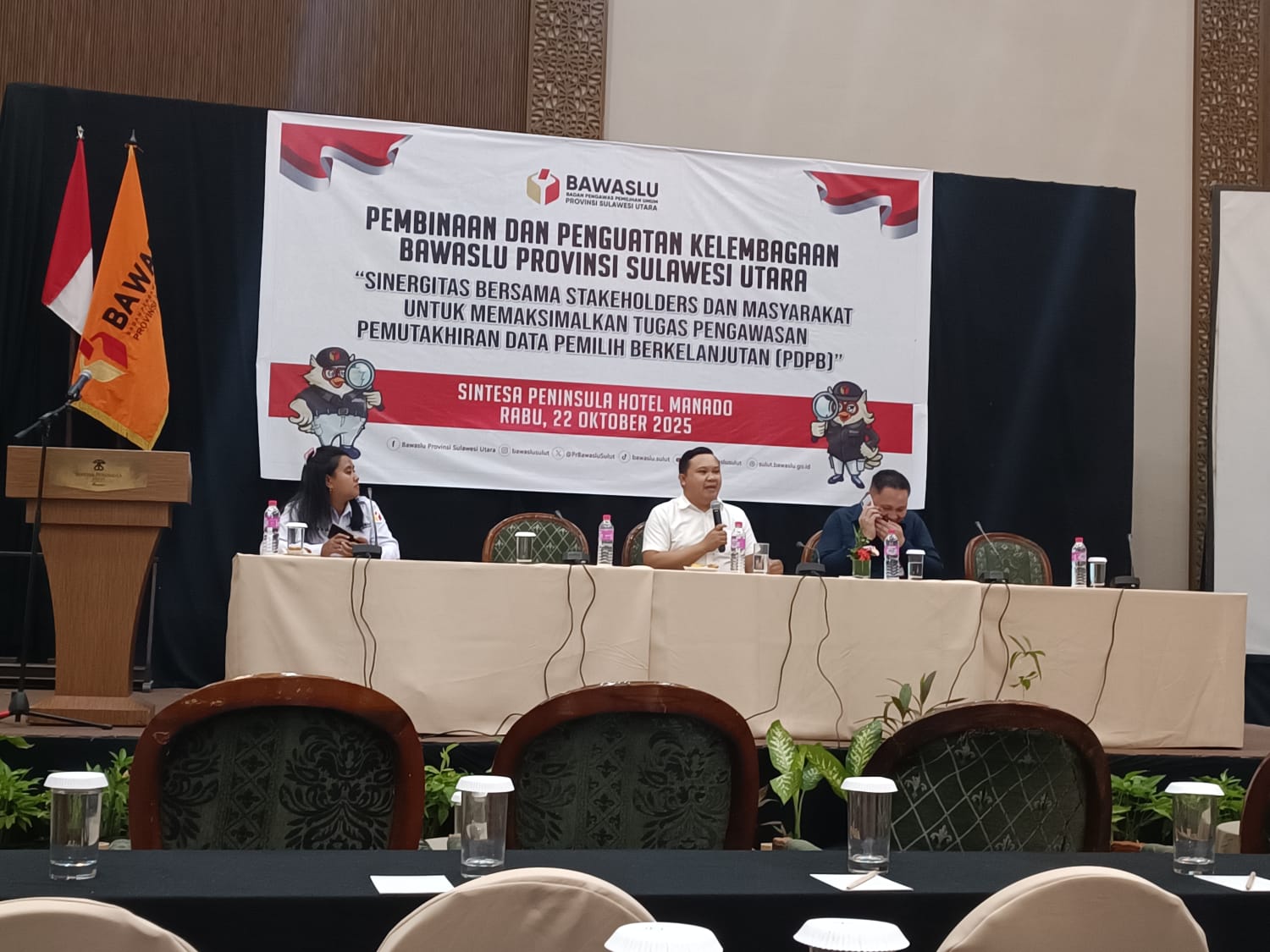 Petasulut.com, BAWASLU SULAWESI UTARA – Dalam upaya memperkuat kelembagaan dan menjaga integritas proses demokrasi, Badan Pengawas Pemilu (Bawaslu) Provinsi Sulawesi Utara menggelar kegiatan bertema “Sinergitas Bersama Stakeholders dan Masyarakat untuk Memaksimalkan Tugas Pengawasan Pemutakhiran Data Pemilih Berkelanjutan (PDPB)”, Rabu (22/10/2025) di Manado.